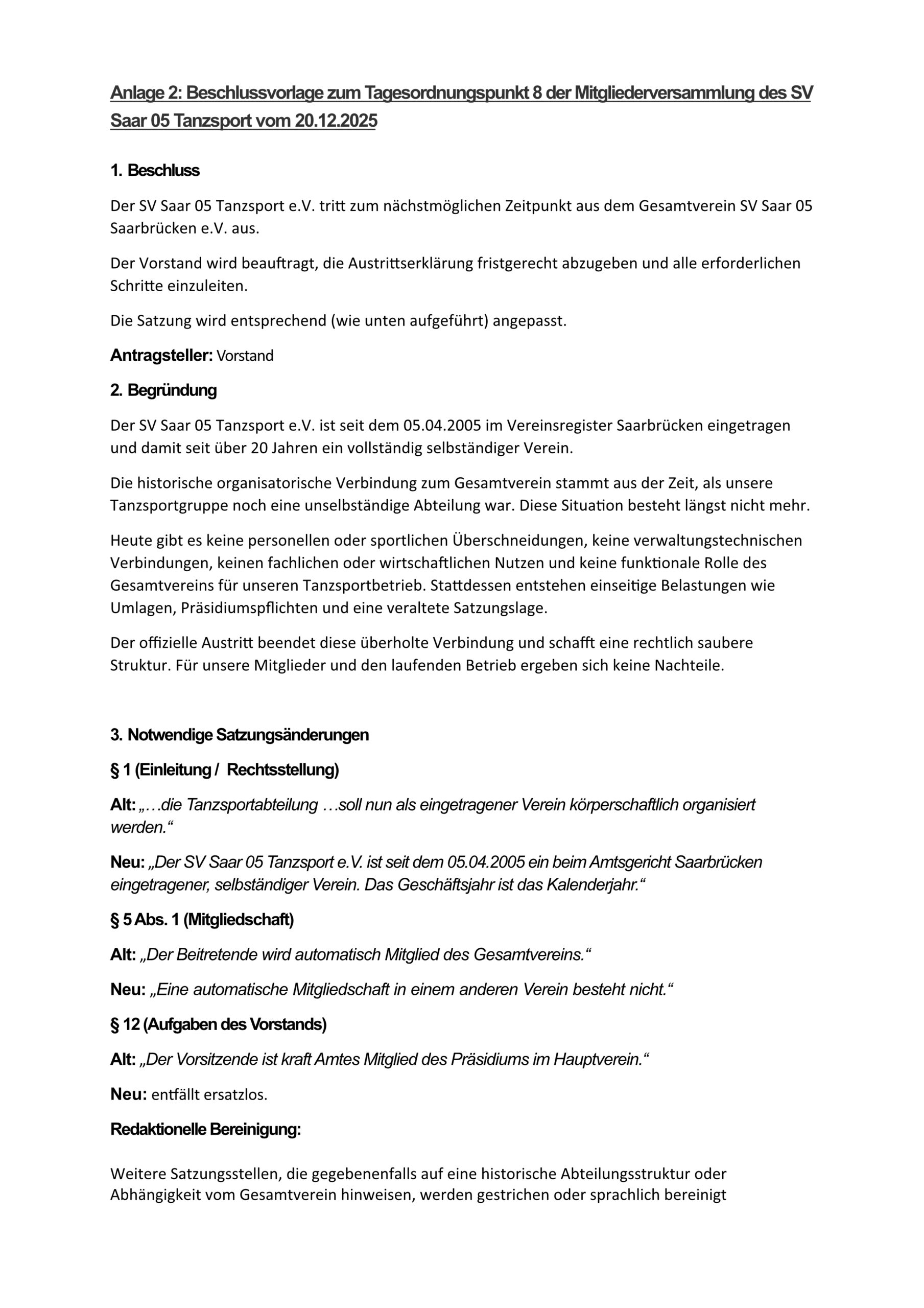 - Offene DTSA Abnahme am 7. Dezember 12. November 2025