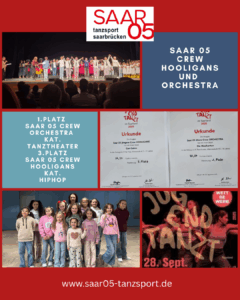 Einen 1. und 3. Platz erreichten unsere Hip Hop Gruppen bei Wettbewerb Jugend tanzt am 28.September in Dillingen. Unsere Trainerin Oksana Panasiuk hatte eine erfolgreiche