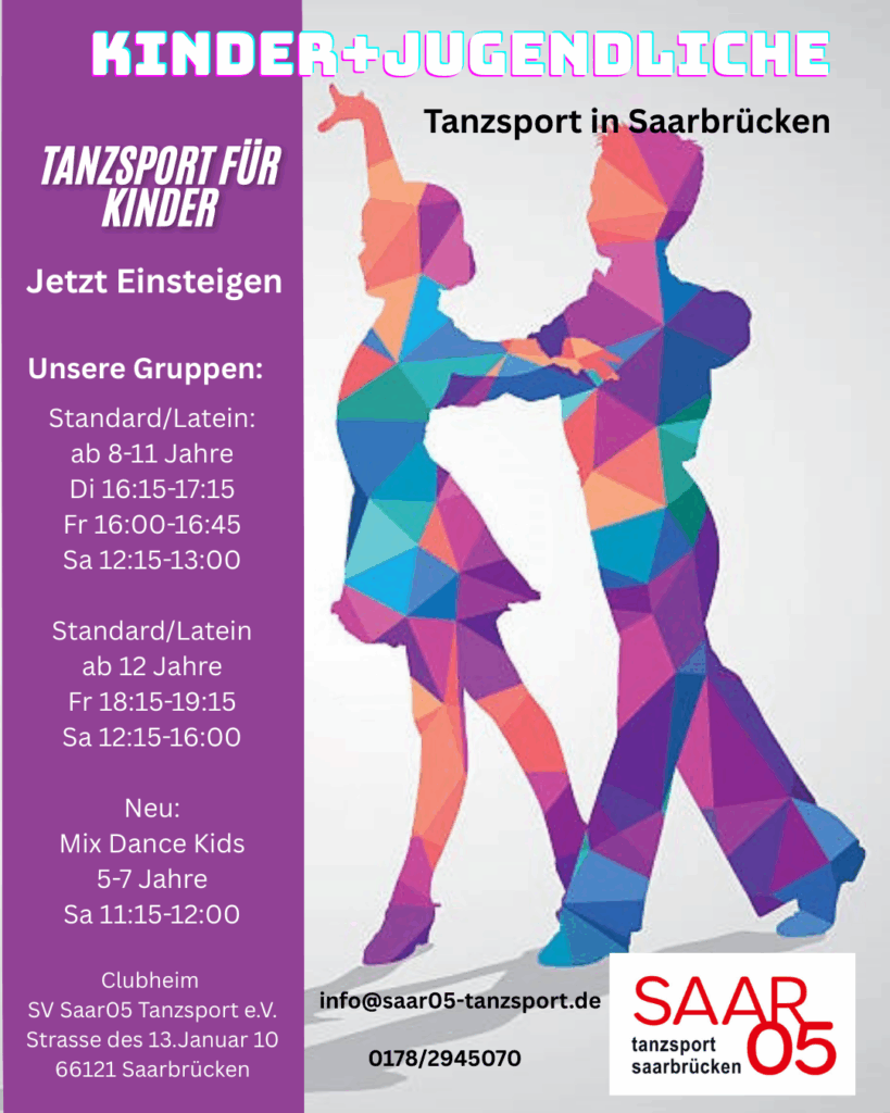 Kinder und Jugendliche können bei uns bereits im frühen Alter einen Eindruck vom Tanzen erhalten. In verschiedenen Tanzsektionen und Leistungsgruppen erfahren sie so entweder das Freizeit-Tanzen oder sogar das Turniertanzen. Unterrichtet werden Paartänze in der lateinamerikanischen und der Standard-Sektion. Wir bieten Trainingseinheiten für Kinder und Junioren zwischen 7 und 14 Jahren an. Die Trainingseinheiten sind primär nach Leistungsstufen und sekundär nach Altersstufen unterteilt. Neben den Grundschritten der Turniertänze unterrichten wir technische Elemente, die in vielen Tanzschulen zu kurz kommen. In lockerer Atmosphäre erarbeiten wir spezielle Charakteristika der Tänze, verleihen den lateinamerikanischen Tänzen den bekannten Hüftschwung sowie Fußtechnik und bauen in den Standardtänzen Schwung und Haltung auf.